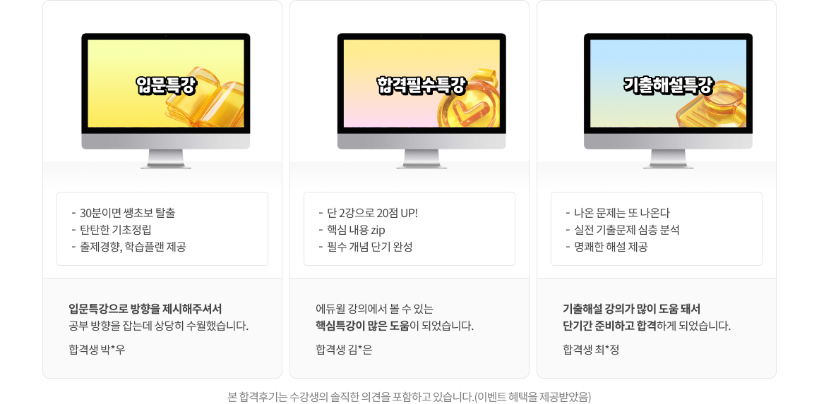 기초부터 마무리까지 특강으로 완벽 대비 합격보장특강 제공