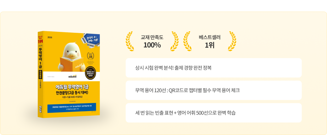 누구나 따라오는 단기 합격 루트, 에듀윌 무역영어 단기합격패스로 시작하세요.